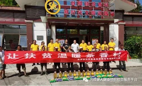 活动当天,在谷脚镇领导的带领下,贵州省扶贫基金会贵赐宝专项扶贫基金对茶香村46户贫困户进行了慰问扶贫,现场为他们送去了生活所需品大米与食用油、现金。