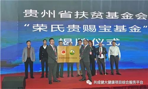 贵州省医保局局长、省政府原副秘书长呂劲松,贵州省健康医药专班常务副班长、工信厅轻工业处处长王瑞,荣氏投资集团有限公司主席荣克敏,贵州省大健康医药产业联盟主席罗小刚,贵州省大健康医药产业联盟副主席柴立,贵州共成健生物科技有限公司(康博会冠名企业)董事长赵阳权、执行总裁赵江海,贵州荣氏贵广生鲜供应链有限公司董事长袁爱莲等领导和嘉宾在康博会开幕式上发表了重要讲话,开幕式上举行了贵州省扶贫基金会“荣氏贵赐宝扶贫基金”的揭牌仪式。