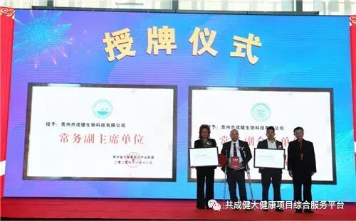 贵州省大健康医药产业联盟授予贵州共成健生物科技有限公司常务副主席单位;贵州省食品药品安全建设发展促进会授予贵州共成健生物科技有限公司常务副会长单位